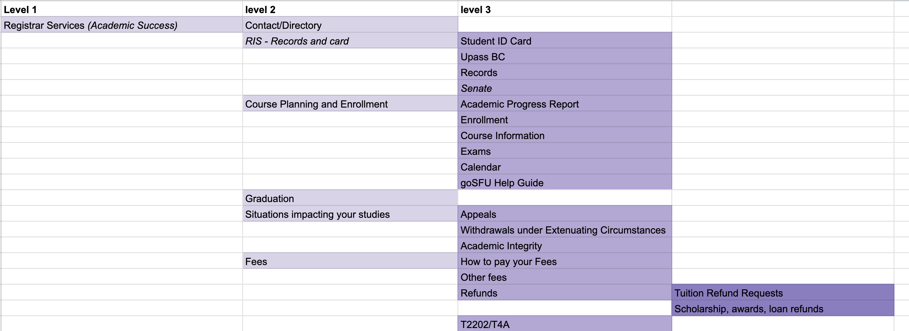 I knew that we needed to centralize the 15 websites under one easy to find location. But it was critical that the menu labels resonated with the students. After completing an in depth audit of all 15 sites, I was able to architect a site map.