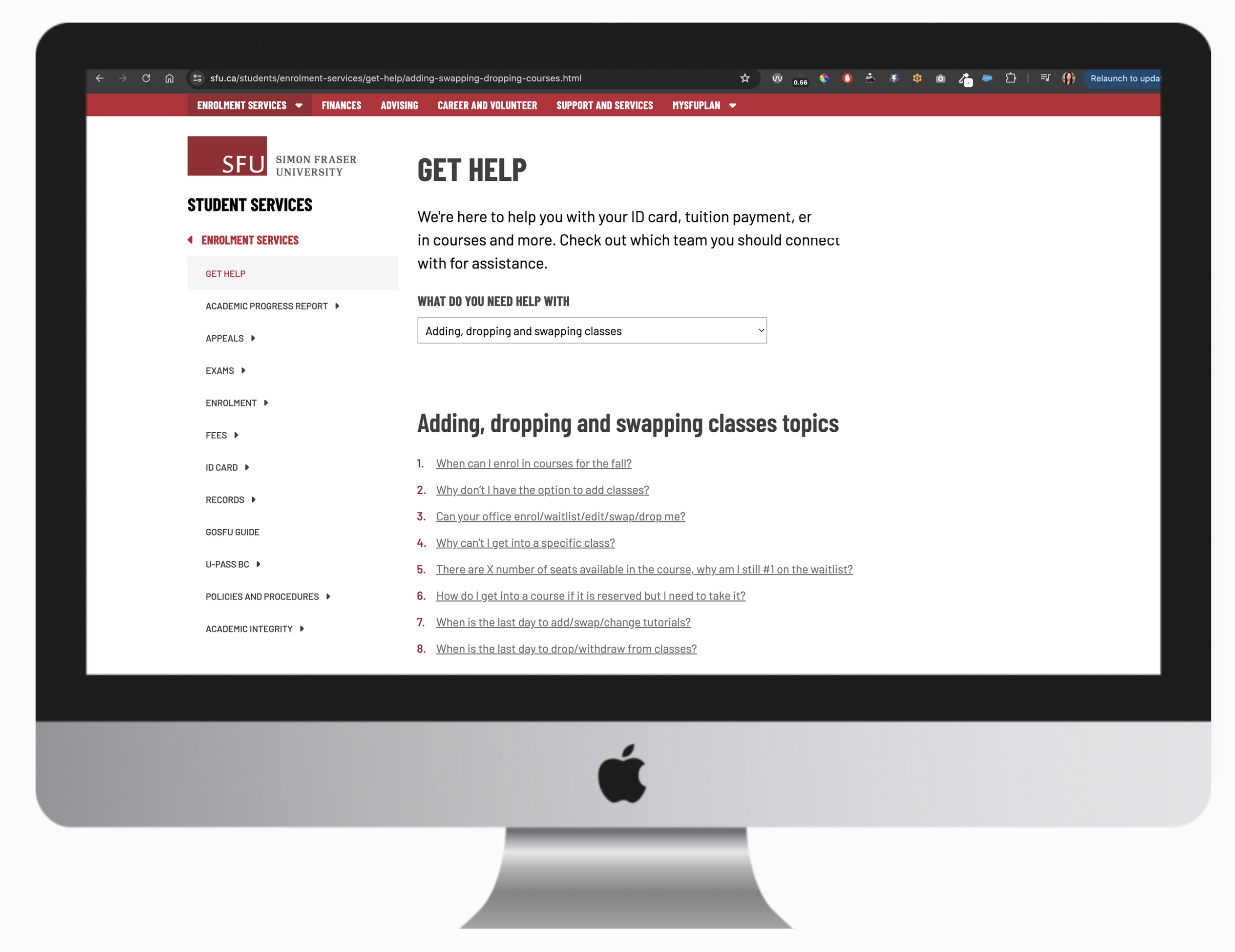 - Enrolment was changed to Adding, dropping, and swapping classes
