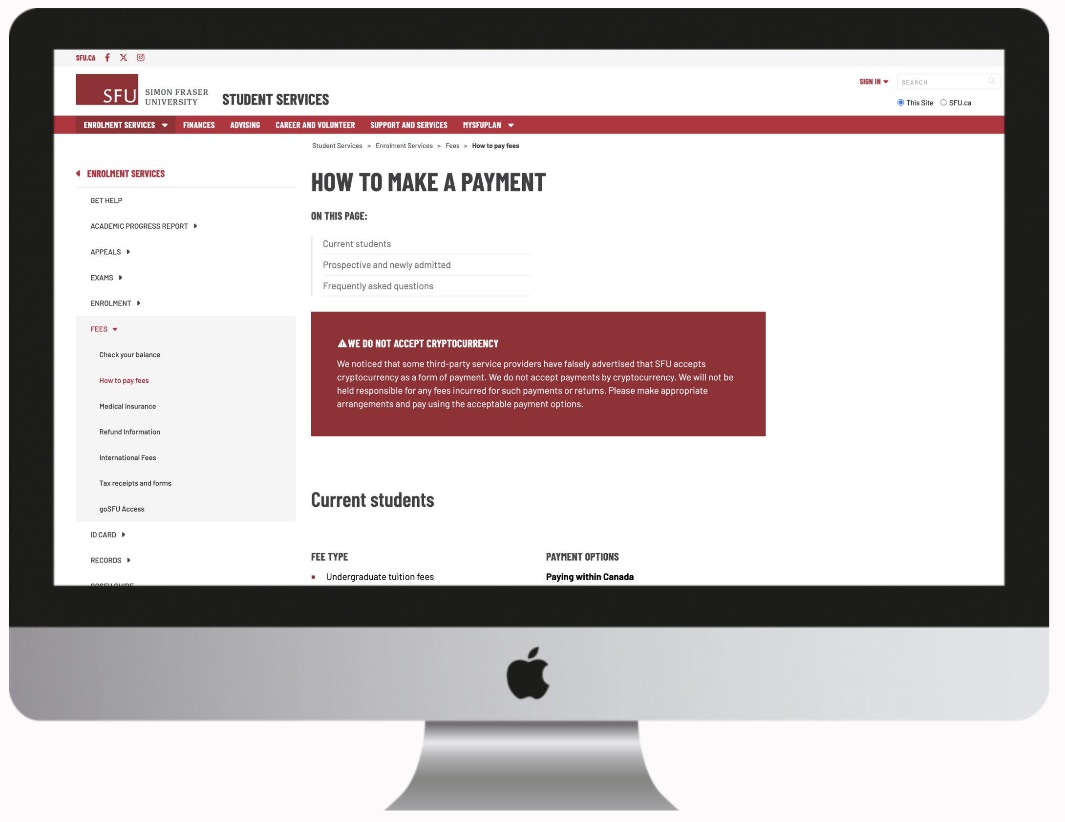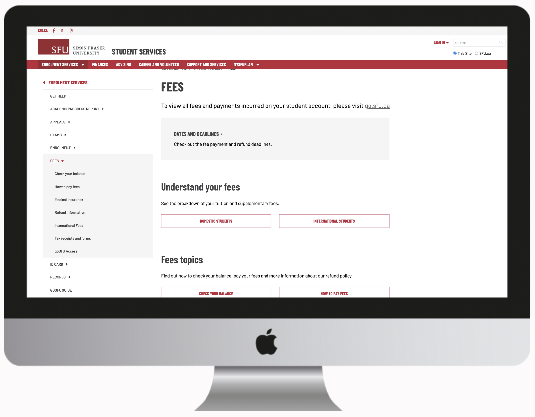 Students struggled to find basic services on our websites. Replacing a lost ID card or figuring out when and how to pay tuition fees is often difficult to find. We offer many services to our students, but over complicate the navigation by organizing all the services into micro sites.
